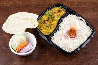 The full meal has everything you need for a satisfying lunch. 2 Main Course items (2 out of Gravy, Sabji or Dal) and 1 Indian Bread (Chapatis 3 / Tawa Paratha 3) & Steamed Rice.Includes Pickle and Salad or Raita.
